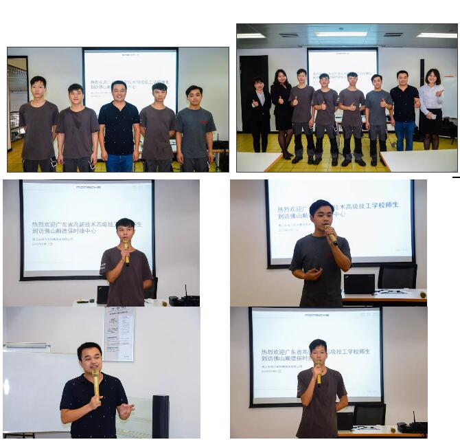 本次活動由汽車工程系鄭大國主任統籌安排,盧成康、朱瑞明、簡永雄老師等帶隊。佛山南海、順德保時捷中心相關部門負責人熱情接待了我校師生一行。