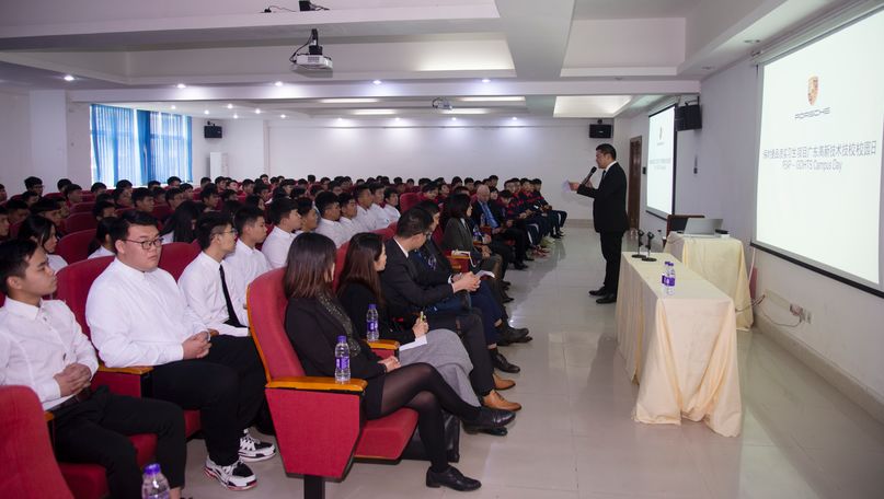 享有“跑車之王”美譽的世界著名高端汽車品牌保時捷(中國)與我校達成了保時捷品質實習生項目((Porsche Elite Apprentice Programme,即PEAP項目),項目啟動發布會議于2月28日上午圓滿完成。宣講會現場