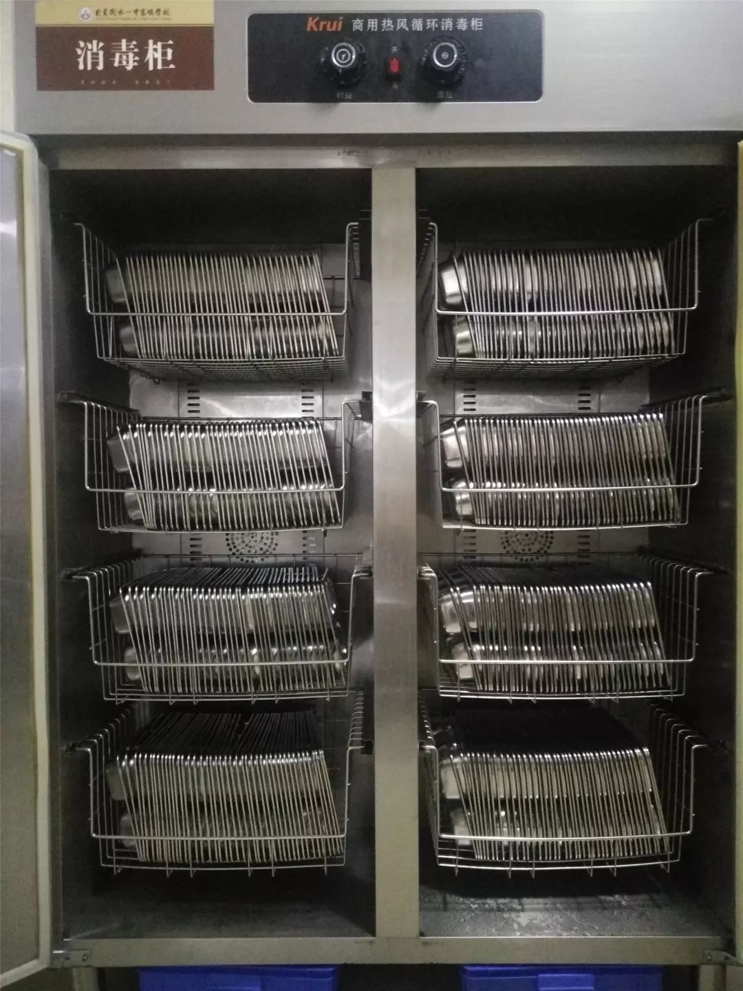 每次學生用餐結束,食堂阿姨們都對餐用具進行徹底清洗,然后使用熱力方法進行消毒,消毒后存放與保潔柜待用。同時每次就餐結束后學校還定時對食堂所有區域進行掃除、拖地、消毒,保持食堂衛生整潔,潔凈的用餐環境讓師生們能夠靜心地享受食堂帶來的幸福。