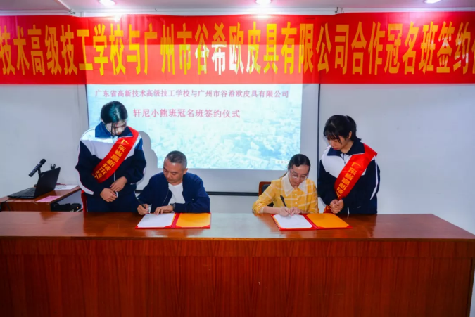 10月28日下午4:30,廣東省高新技術(shù)高級技工學(xué)校與廣州市谷希歐皮具有限公司合作冠名班簽約儀式于學(xué)校天培樓會議室舉行。