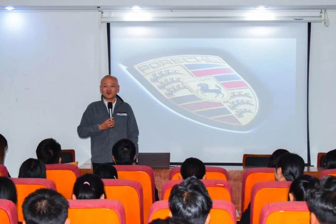 在“開啟你的保時捷品質(zhì)實習(xí)生之旅”交流會上,保時捷(中國)PEAP項目經(jīng)理李衡、保時捷中心代表一行高管以及汽車工程系負責(zé)人、PEAP項目教師均一一列席,汽車工程系、經(jīng)貿(mào)系約200余名學(xué)生代表聆聽了此次宣講會。汽車工程系主任鄭大國擔(dān)任主持。