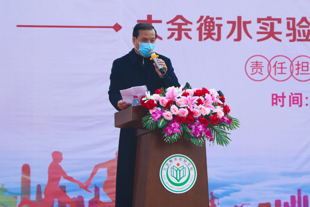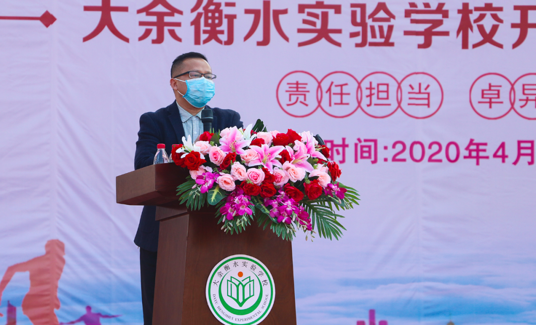 大余衡水實驗學校書記、校長王躍平作《彰顯家國情懷 提升生命素養》的新學期致辭。王校長表示,在新冠肺炎爆發的特殊時期,黨和國家領導人以民為本的責任和擔當,全國人民同心同德、一往無前團結抗疫,讓我們感受到了大中國的團結、友善、互助和擔當;一線抗疫醫護工作者、人民解放軍、志愿者們的無私奉獻,充分彰顯了他們舍小家為大家的家國情懷。王校長告誡衡實莘莘學子,在困境面前要樹立正確的世界觀、人生觀、價值觀,培養愛國愛民、與人為善的家國情懷,在防疫抗災過程中,提升自己的生命素養,學會完善自我,知難逆行。同時王校長寄語學生,要珍惜時光,提高學習效率,決戰中考、高考!