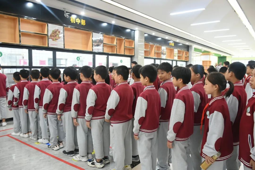 到達(dá)餐廳后,他們?cè)谟兄刃虻嘏抨?duì)取餐,隊(duì)伍整整齊齊,長(zhǎng)長(zhǎng)的隊(duì)伍里聽(tīng)不到一絲喧鬧聲,個(gè)個(gè)文明有序、彬彬有禮。“無(wú)聲餐廳”不僅僅是一句口號(hào),更是我們每個(gè)人的行動(dòng)!