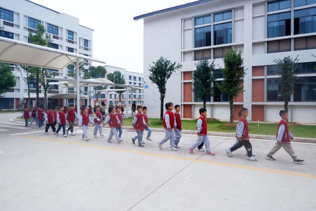每到時(shí)間,學(xué)生自覺(jué)排成整齊的隊(duì)伍,按照規(guī)定的路線向餐廳出發(fā)!這整齊的路隊(duì)就是他們的招牌,這有力的步伐就是他們的精神面貌!