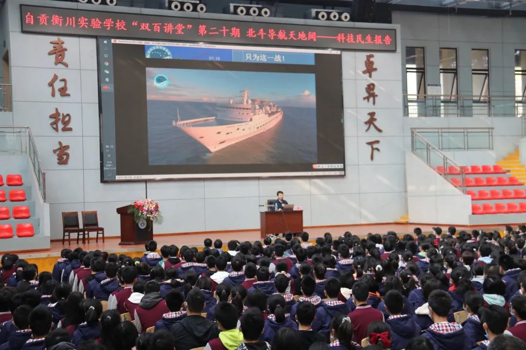 11月14日,中國航天科技集團中國運載火箭技術研究院總體設計部火箭設計師、中國科學院國家空間科學中心博士錢航走進衡川“雙百講堂”,與莘莘學子共話科技,揭開北斗衛星導航系統的神秘面紗!我校小學、初中、高中1500余名師生參與了本次活動。