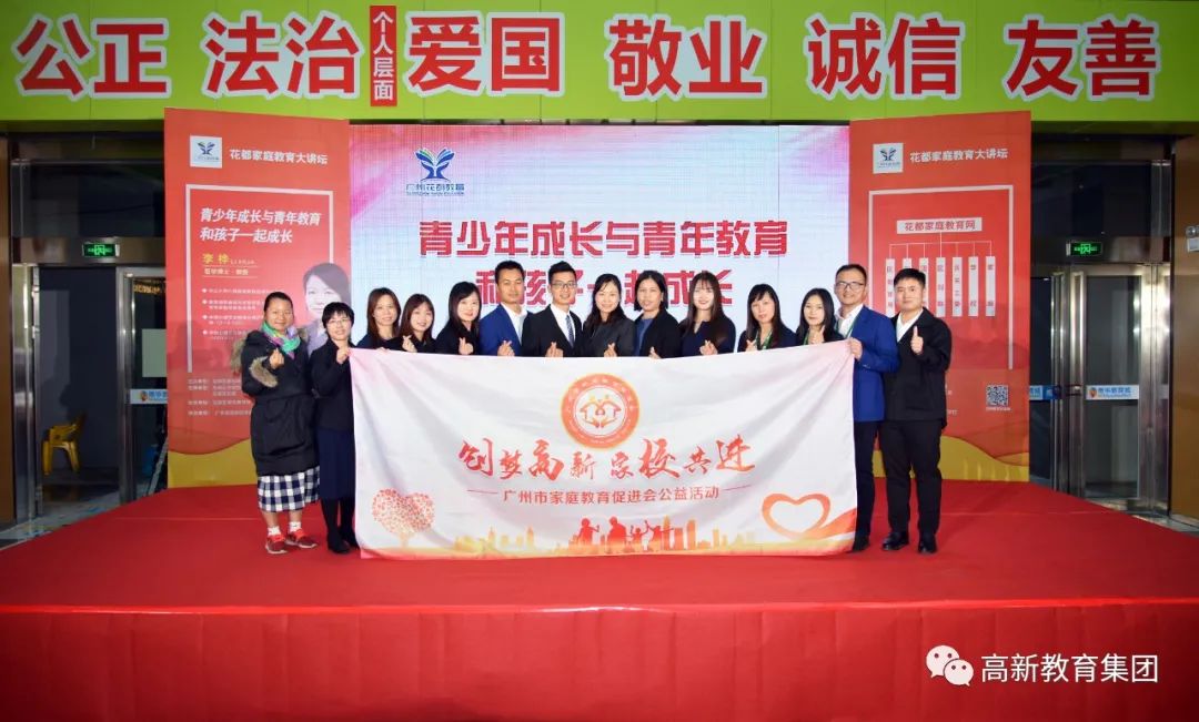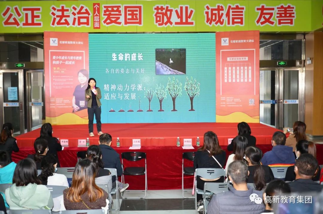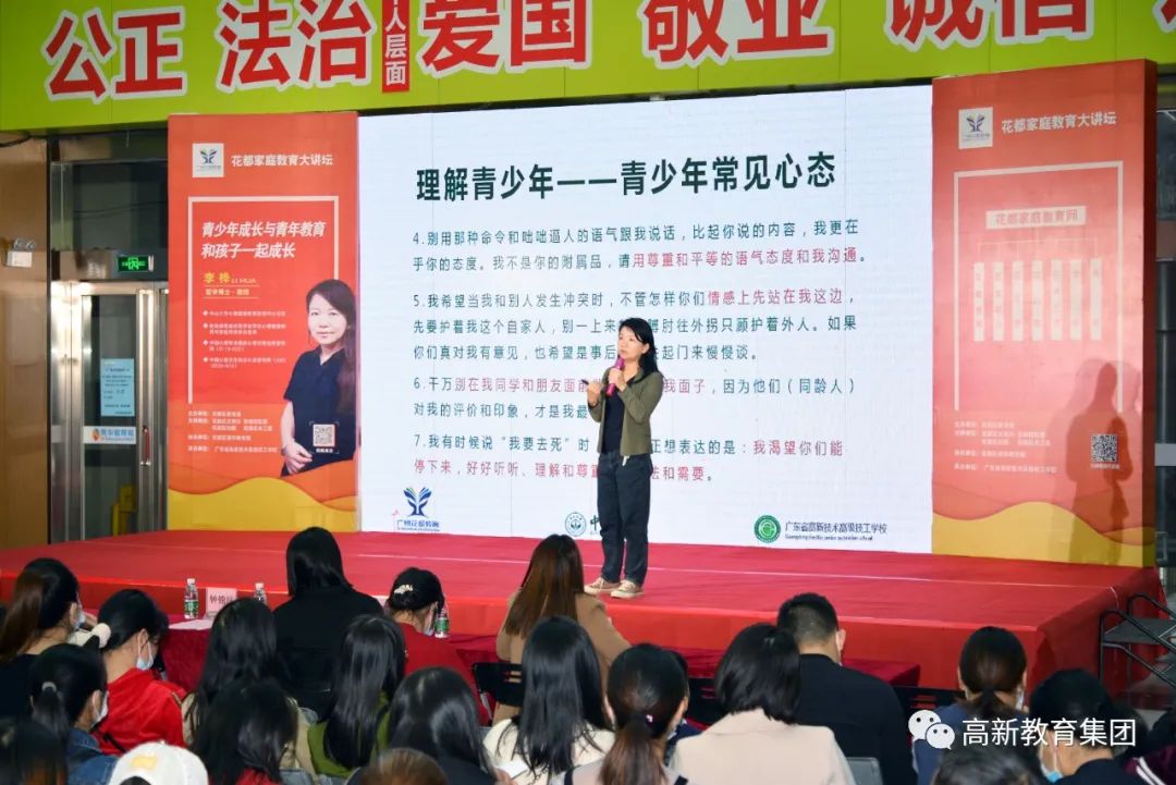 11月28日,由花都區教育局主辦,經花都區文明辦、花都團區委、花都區婦聯、花都區關工委、廣州市家庭教育促進會等單位的全力支持,廣州高新教育集團旗下學校廣東省高新技術高級技工學校承辦的花都家庭教育大講壇第4講“青少年成長與青年教育 與孩子一起成長”在花都區南華教育城正式開講。
