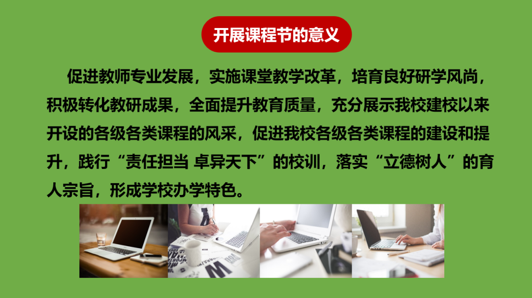 吳燕校長(zhǎng)首先從課程節(jié)的意義出發(fā),讓大家明確了課程節(jié)開(kāi)展的重要意義。然后從國(guó)家級(jí)課程展示、地方課程展示及校本課程展示、大課堂展示、優(yōu)秀教研活動(dòng)展示、班主任班會(huì)課比賽、家長(zhǎng)講堂、優(yōu)秀校本課程匯展及匯演等七個(gè)方面進(jìn)行了具體的闡述,讓大家找到了落實(shí)的方向。最后吳燕校長(zhǎng)對(duì)本次課程節(jié)的圓滿進(jìn)行表達(dá)了衷心的祝愿和滿滿的期待。她表示:本次課程節(jié)為每位教師提供了學(xué)習(xí)、交流、展示的平臺(tái),最后將給大家一個(gè)精彩紛呈的課程“盛宴”。課程節(jié)期間,教師、家長(zhǎng)、學(xué)生即是演員,又是觀眾。通過(guò)舉辦課程節(jié),學(xué)生是最大受益者,感受形式多樣的課程形式,克服求知的倦怠情緒,增強(qiáng)的好奇心的探究欲望,提高了學(xué)習(xí)力,為學(xué)生終生發(fā)展奠定基礎(chǔ)。