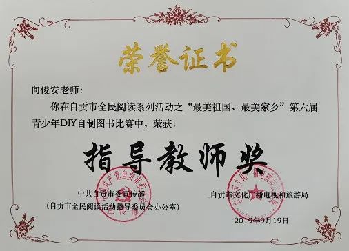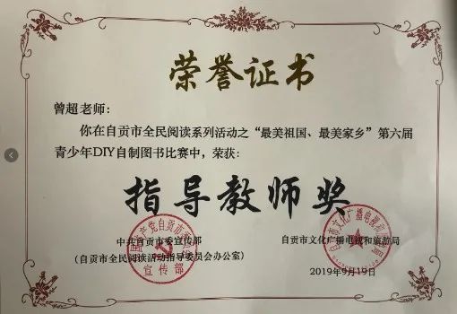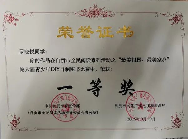 學(xué)生獲自貢市第六屆青少年DIY 自制圖書(shū)比賽一等獎(jiǎng)。