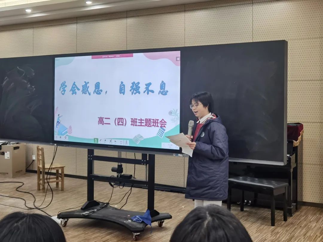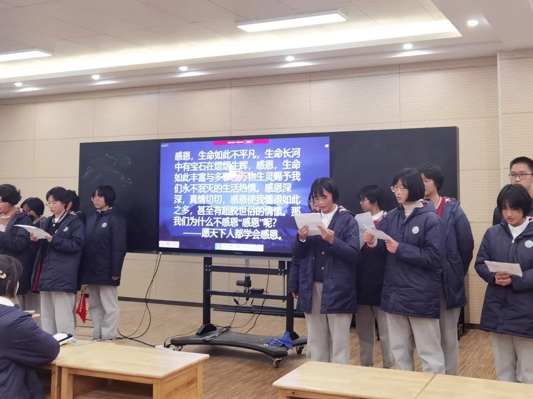 整個(gè)班會(huì),由學(xué)生組織、安排,中間不僅有學(xué)生們對(duì)“感恩”的理解,更有收集到的家長(zhǎng)們對(duì)學(xué)生的沁人心腑的“嘮叨”。班會(huì)課的最后,鄒老師總結(jié)發(fā)言,把“感恩”推向了高潮!