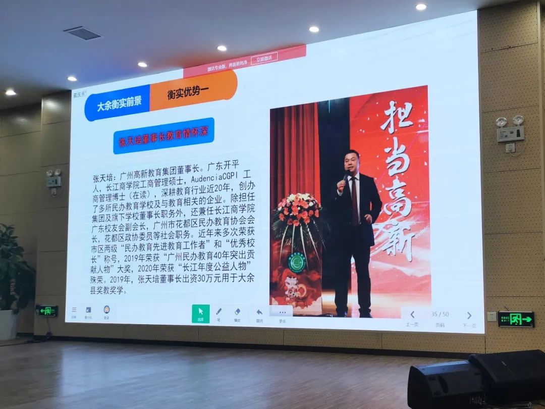 接著,曾局長以近三年大余教育的輝煌成績?yōu)槔單龃笥嗝褶k教育的光明前景。曾局長指出,大力發(fā)展民辦教育是十分重要的,民辦教育不僅有利于積蓄社會(huì)教育資源,滿足人民群眾對優(yōu)質(zhì)教育的強(qiáng)烈渴望,且機(jī)制靈活、適應(yīng)市場、講求實(shí)效,能夠有效地促進(jìn)教育供給的多樣化。更重要的是,大余衡實(shí)有著強(qiáng)大的教育實(shí)力背景,具有七大獨(dú)有的優(yōu)勢:
