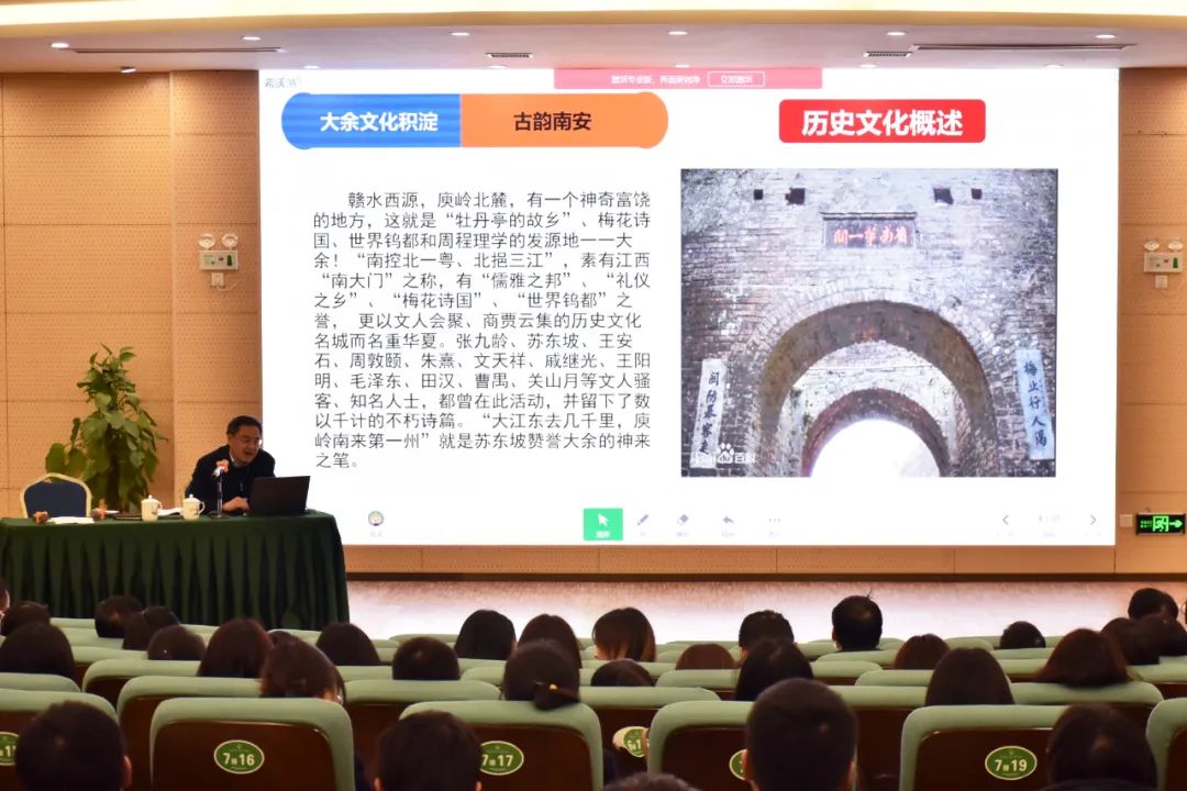 曾局長首先從古韻南安、紅色南安、多彩南安、美食南安四個(gè)方面入手,向全體教師介紹了大余厚重的歷史文化積淀。
