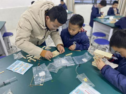 在大課堂開課之前,柴老師先確定了所授課的學段為三、四年級,又挑選了符合這一學段學生思維發展的小制作。做好一切準備工作后,“柴小小科技課”正式開課了,但在剛開始上課的時候,柴老師還在擔心學生不喜歡,因為這節課只是鍛煉學生的組裝、拼接能力,但出乎意料的是,學生在大課堂上表現出了極大的熱情。