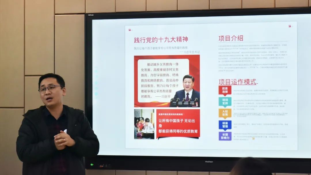 廖杞南理事長從招募選拔、培訓(xùn)支持、入校安置、項目管理、長期影響力等方面介紹項目的運作模式,從線下培訓(xùn)交流活動、線上培訓(xùn)資源庫交流平臺、個性化發(fā)展資源分別介紹項目老師們的培訓(xùn),從三個維度、五個階段、五種方式講解項目老師的發(fā)展藍(lán)圖,結(jié)合項目影響力、課堂影響力、社區(qū)影響力、往屆校友去向以及合作伙伴等層面的概述使我校領(lǐng)導(dǎo)們更加了解美麗中國項目的培養(yǎng)模式。美麗中國將全國各地優(yōu)秀人才匯聚到最艱難的地方,向大眾昭示著這樣的培訓(xùn)對于非師范專業(yè)老師也是一條道路,同時也深刻感受到這所“另類”師范的獨特魅力。