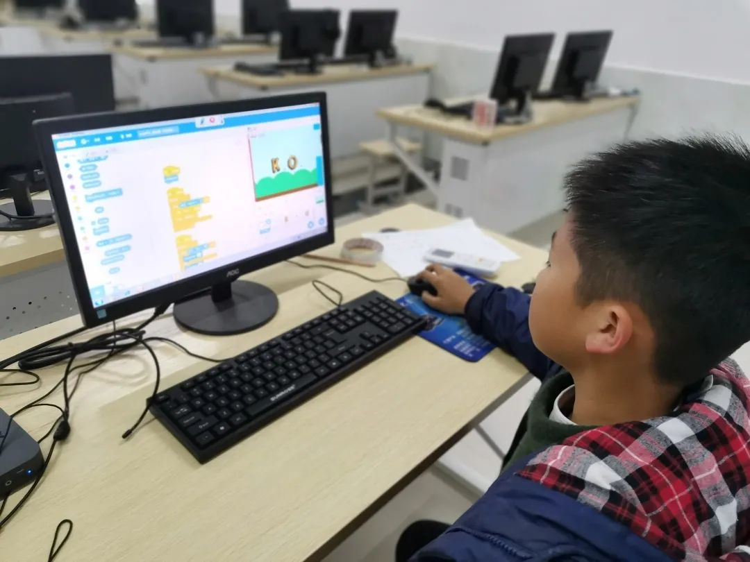 為了更好地提升學生的信息素養(yǎng),我校開設少兒編程大課堂,孩子們通過項目式開展和小組合作的方式,使用圖形化編程語言Scratch創(chuàng)作,理解順序、并行、重復結構、偵測條件等計算思維中的重要基礎概念和算法知識,既鍛煉了邏輯思維能力和創(chuàng)新能力,也增強了其不斷試錯和解決問題的能力。